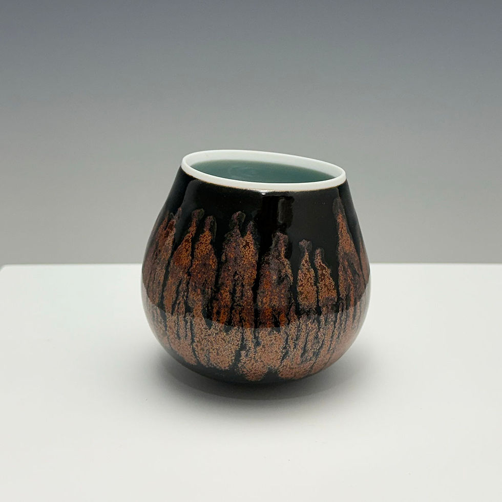 Chris’s work is thrown and turned by hand on the wheel using Limoges porcelain. He specialises in pieces that are designed for functional use but that beg to be displayed within interior spaces. He primarily makes cups, teapots, pourers, beakers and lidded pots. When making more experimental ceramic forms that veer away from functional, he will often incorporating an interactive element. His work is intimate, tactile and feels precious in the hand.