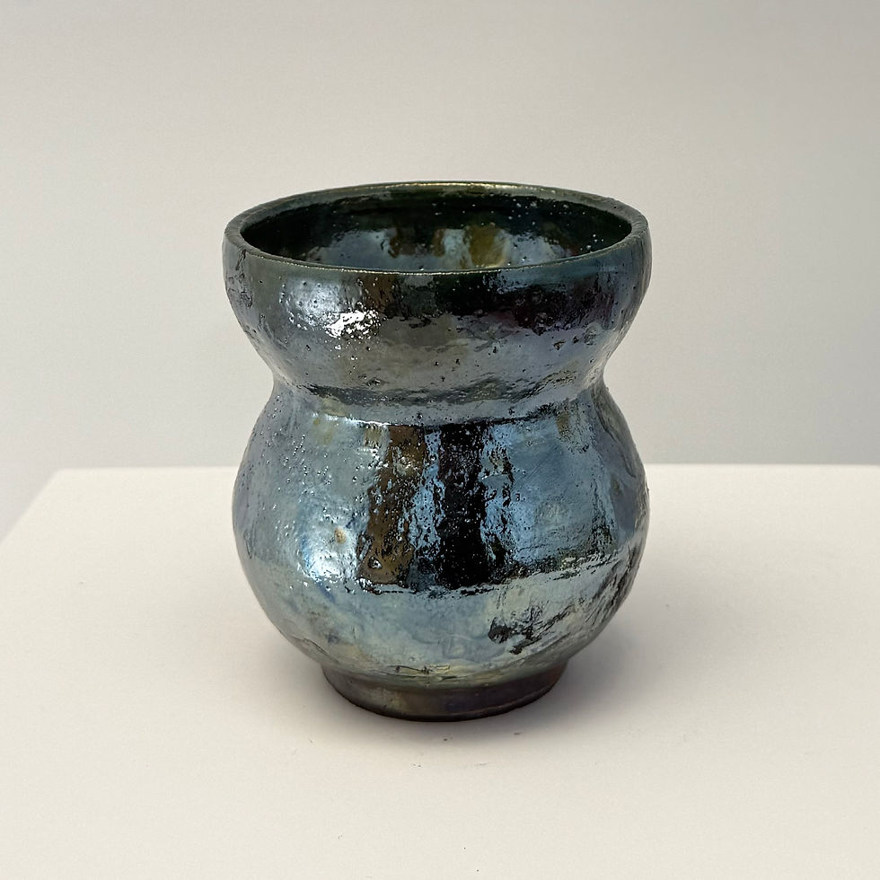 Laura’s raku glazed vessels are inspired by the fragile beauty of the forest. Having taken sanctuary in the silence of long walks in the forest near her home, Laura was greatly affected by the devastation caused through wildfires when acres were wiped out during the hot summer of 2022. Her handmade ceramics are informed by shapes and textures found in nature and by focusing on the raku glazing method she captures the strength and resilience of nature. Layering glazes and oxides, these ceramic vessels are fired several times to create variation and depth in colour and tactile textures.